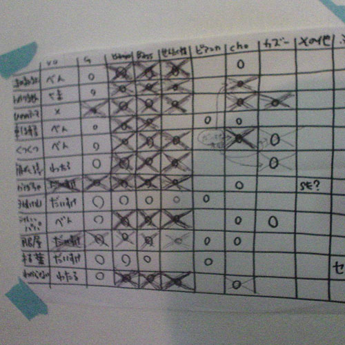 これが恐怖の録音表というやつで「○」の欄がまだ録ってない印。