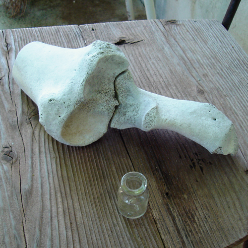 骨と小瓶を発見。