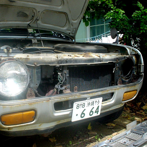 おう、ヘッドライトが片方切れている。
