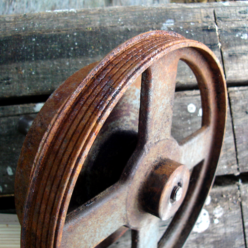 時計メカニズムはギヤの1つのバーレルとシリーズで作られる3つの「列車」から成って、各バーレルはドラムに巻きつけられる鋼線によってそれの下の重さに関連づけられます。