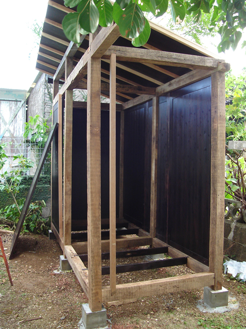 でー床貼ってー外側ペンキ塗ってー完成でーす。