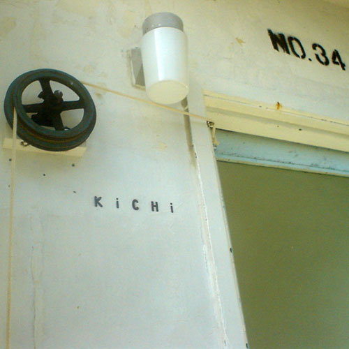 KiCHiのドアは、写真のような滑車と重りによって勝手に閉まります。
